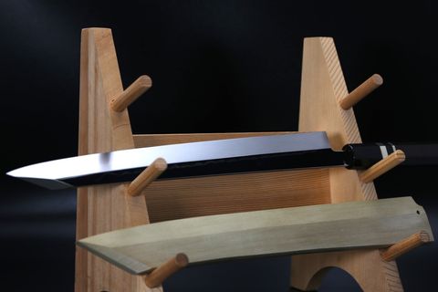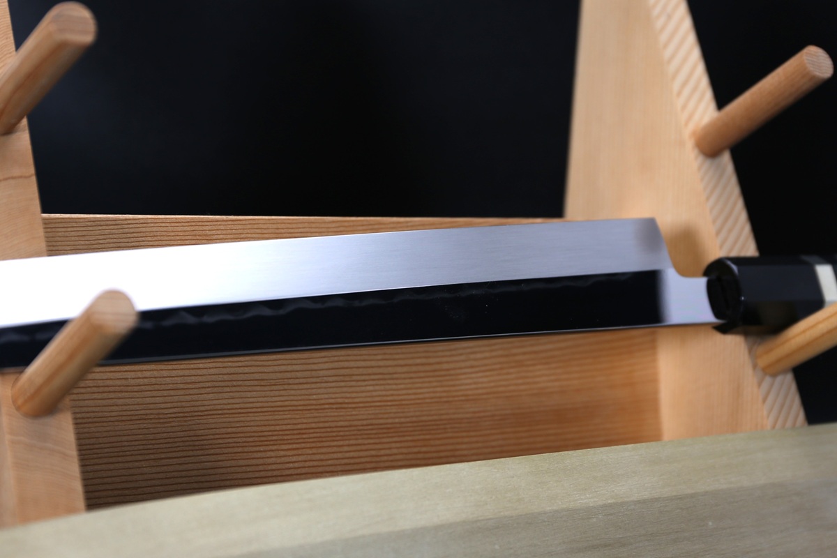 During quenching, a wave-like pattern appears by placing mud on the knife. It is called a Hamon in Japanese.