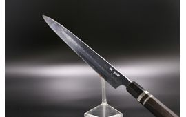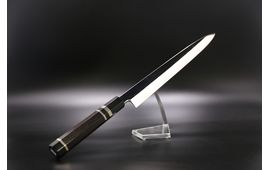 Yanagiba Shirogami-3 (WS#3) Oil Quenching 300mm One Side Mirror Namiukashi Hamon Ebony handle with sheath By Yoshikazu Ikeda