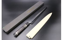 Kiritsuke Yanagiba Aogami-1 (BS#1) 300mm Dobule Welding One side mirror Kashumi Finish Ebony Handle with Sheath By Satoshi Nakagawa